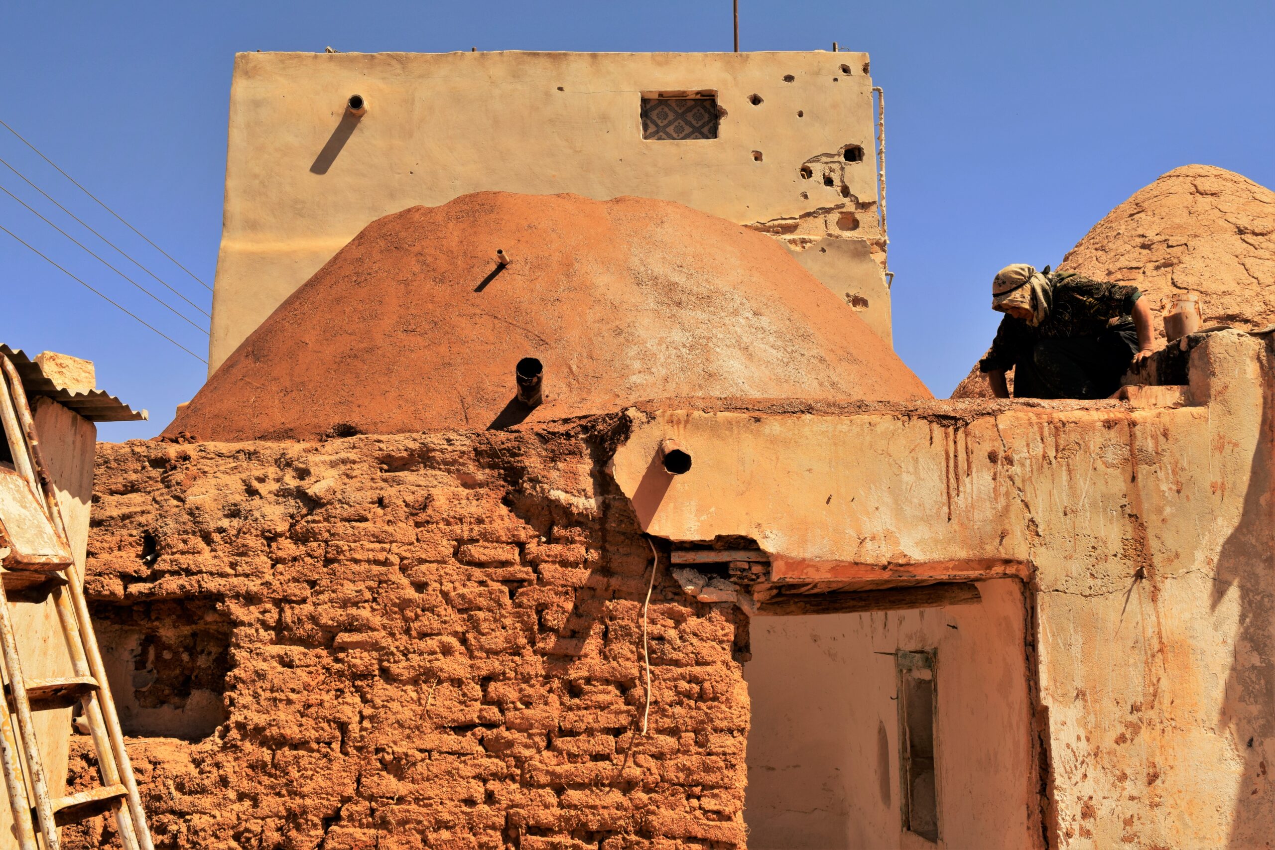 تمت دراسة الترميم وإضافة خلطة للمواد الأولية المستخدمة في القبب وذلك بتعاون واستشارة خبيرة تقنية أكاديمية من جامعة حلب لتطوير الخلطات وتقليل عمليات الترميم الدورية التي يقوم بها سكان البيوت الطينية دورياً.